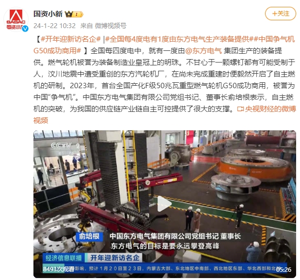 [国资小新]#开年迎新访名企# |#全国每4度电有1度由优发国际生产装备提供##中国争气机G50成功商用#