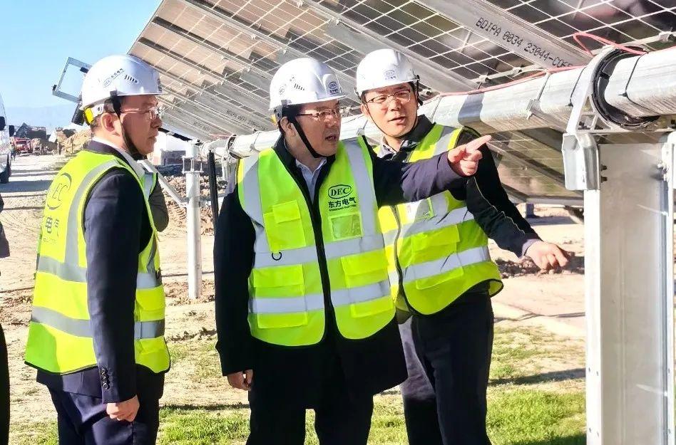 仪式前,左永祥一行听取了项目汇报,并先后到光伏现场升压站、集控楼、光伏区,实地了解撒马尔罕光伏项目的建设、规划、运营和未来发展等情况。